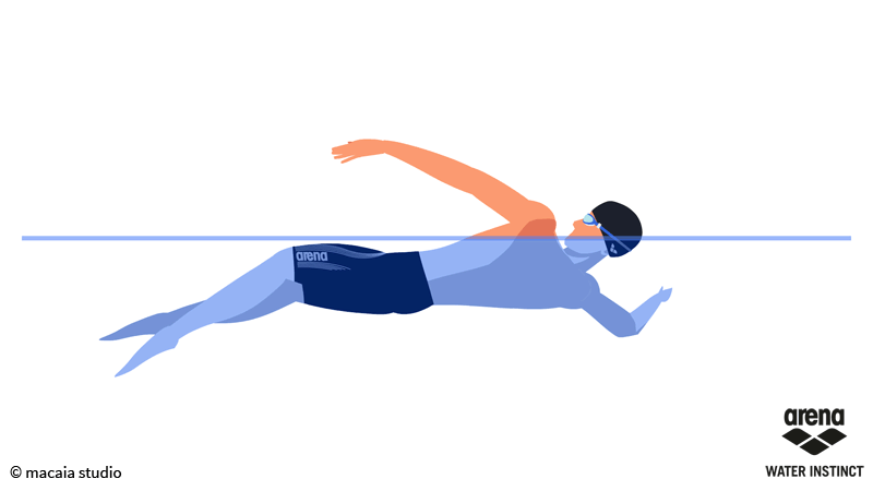 - Los hombros y el pecho deben de mantenerse siempre un poco más arriba de la superficie para no tener resistencia con el agua.