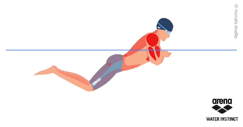 - La brazada se debe agrandar cuando se hace el jalón y regresa en flecha delante de la cabeza.